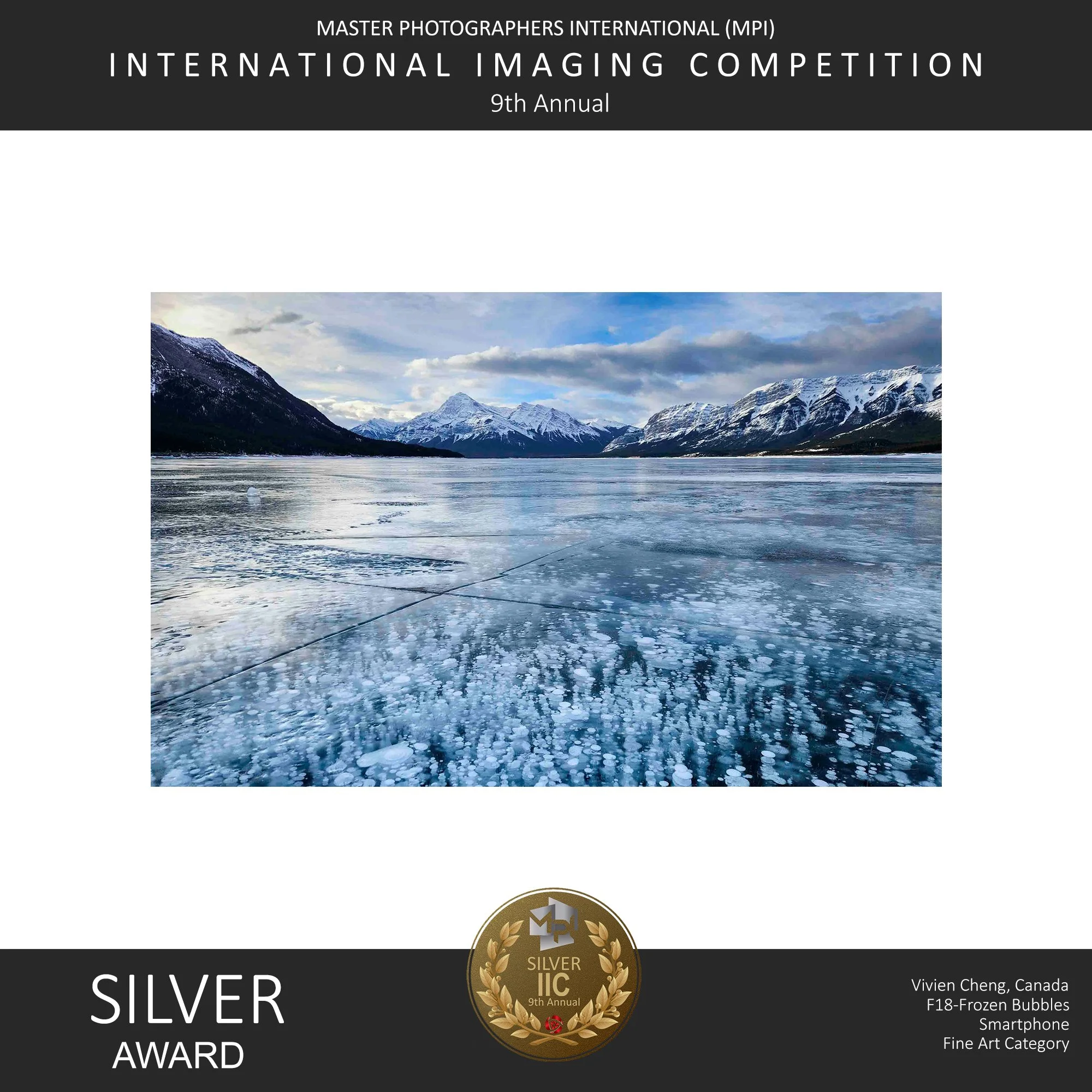 In addition to the above accolades, in 2024 Vivien’s submission “Frozen Bubbles” won the Class Award in the Masters Photography International’s 9th Annual International Imaging Competition.