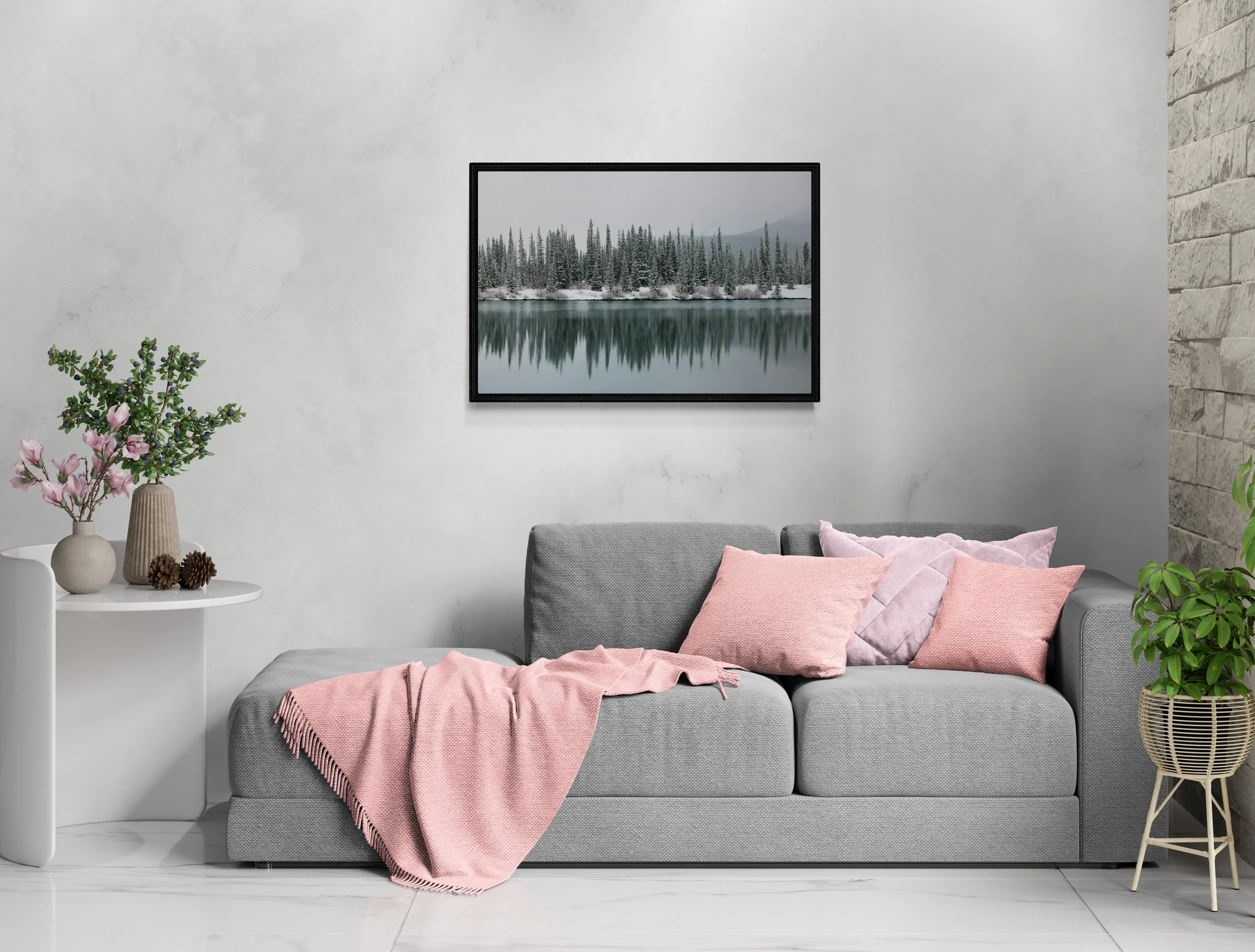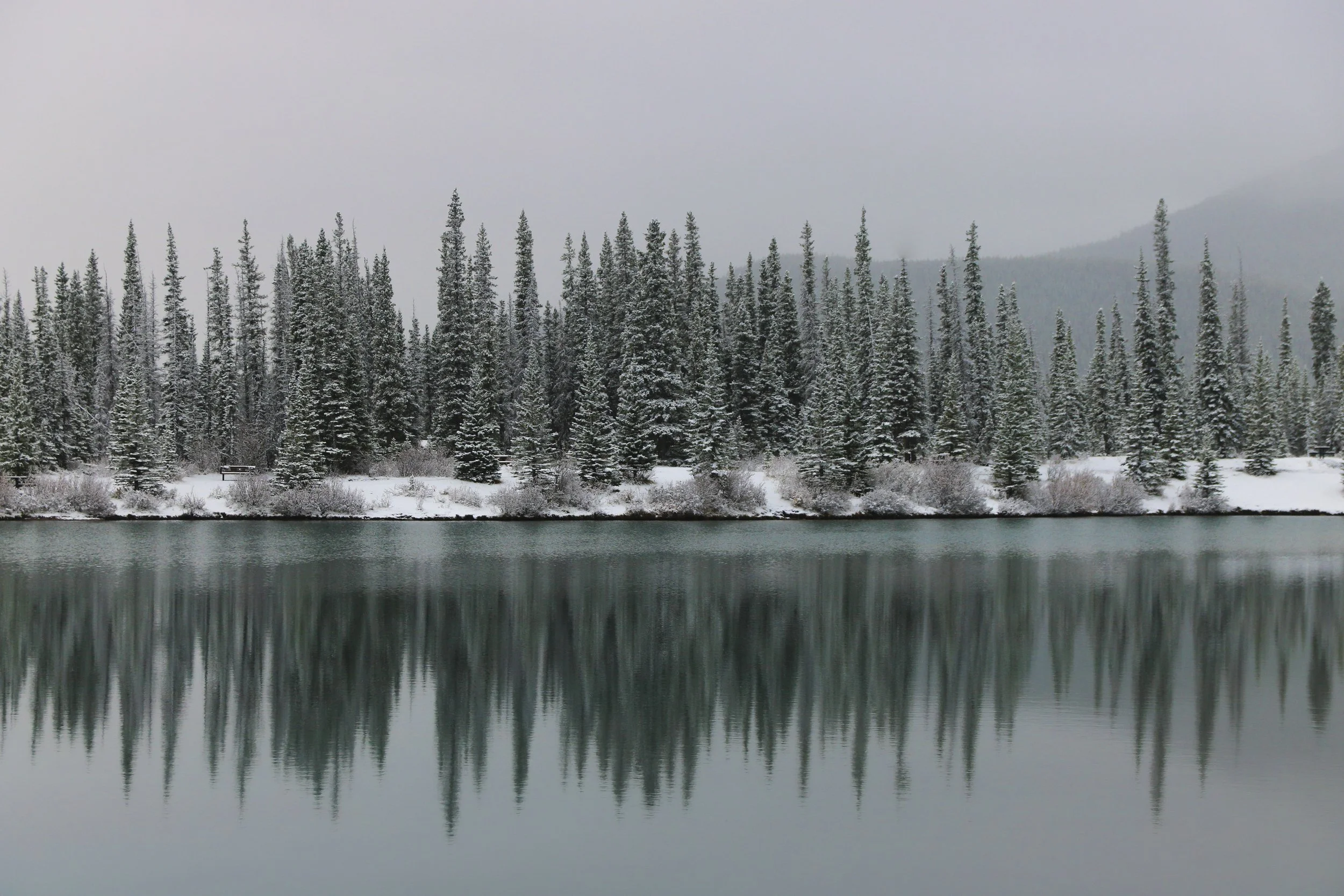 Early one September morning, snow had fallen for the first time this season, creating a little white dusting at Forget-Me-Not Pond in Bragg Creek, Alberta. The turquoise water created a beautiful reflection of the scene at the edge of the pond. Snow continued to fall as I captured images at this location. I could feel the snow on my nose, and it felt like a scene from a movie. The ambiance created was truly magical.