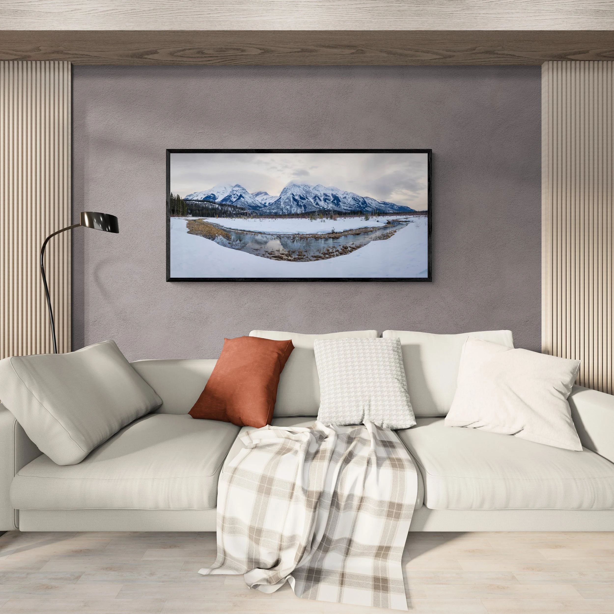 The crispness of the cold air hit my face as soon as I alighted and started a short walk downhill to this location. It was untouched, and I had it all to myself. The surroundings were quiet, and the air was still. The sun struggled to peek from behind the clouds, casting soft hues of pink, blue, and yellow. There was just enough light behind the mountain range to cast its shadow on the slow-moving stream in the foreground. I shot a series of eight overlapping images to create this panoramic view of Mt. Hunter. I marveled at the pristine beauty of the untouched wilderness. This photo was taken at Field, Yoho National Park in British Columbia.