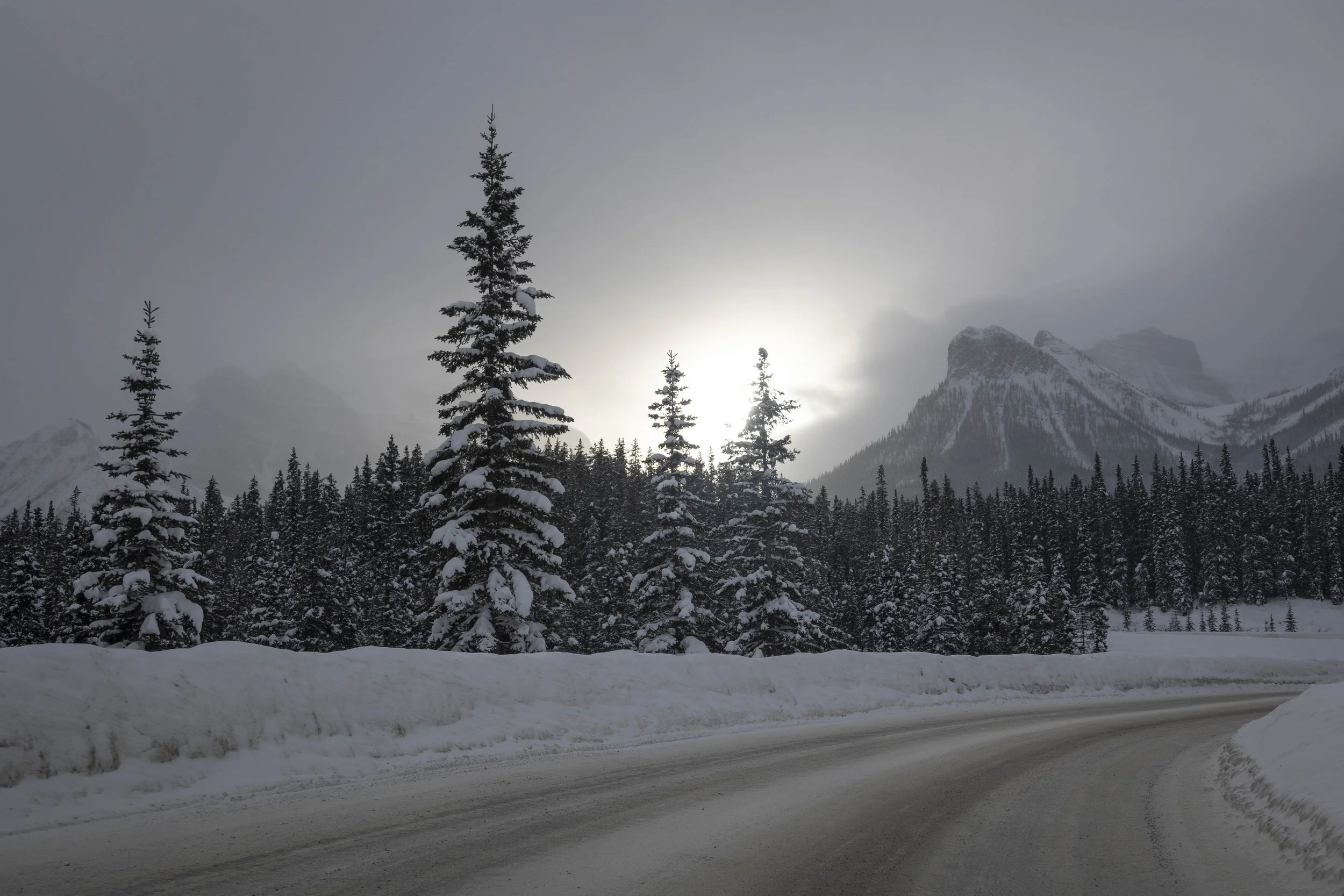 This scene is a common sight during a winter drive in the Canadian Rockies. However, catching the sunset peeking over the ridge is something special. It felt like my very own movie driving towards that bend, evoking a romantic feeling like when the couple drives off into the sunset. I had to capture this moment and five others like it as we went around the corner.