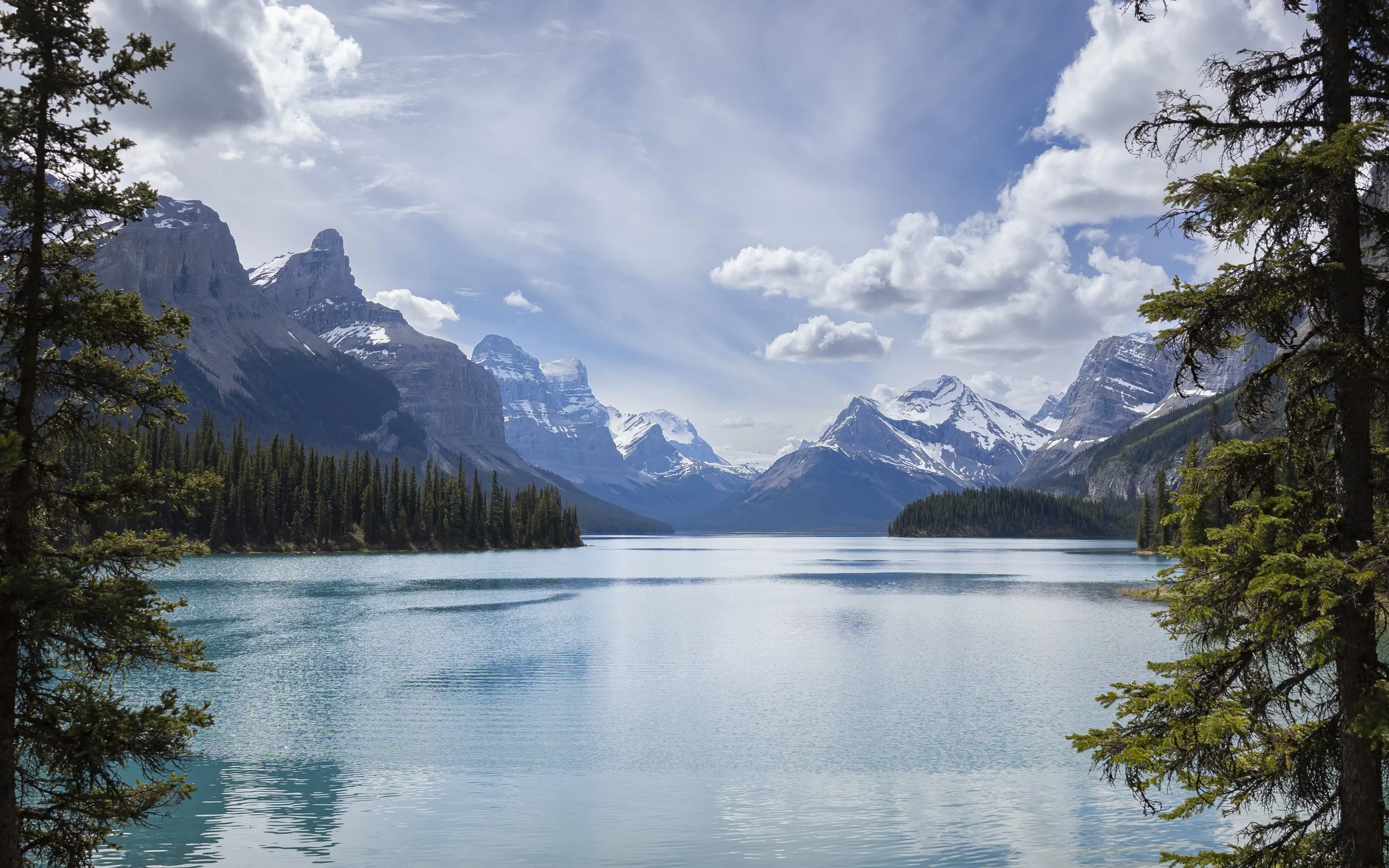 Maligne Lake is renowned for its serene and picturesque views and is in Jasper National Park, Alberta, Canada. The azure waters, snow-capped peaks, glaciers make it a picturesque destination. The varying colors of the water due to glacier sediment and sunlight refraction add to its charm.
