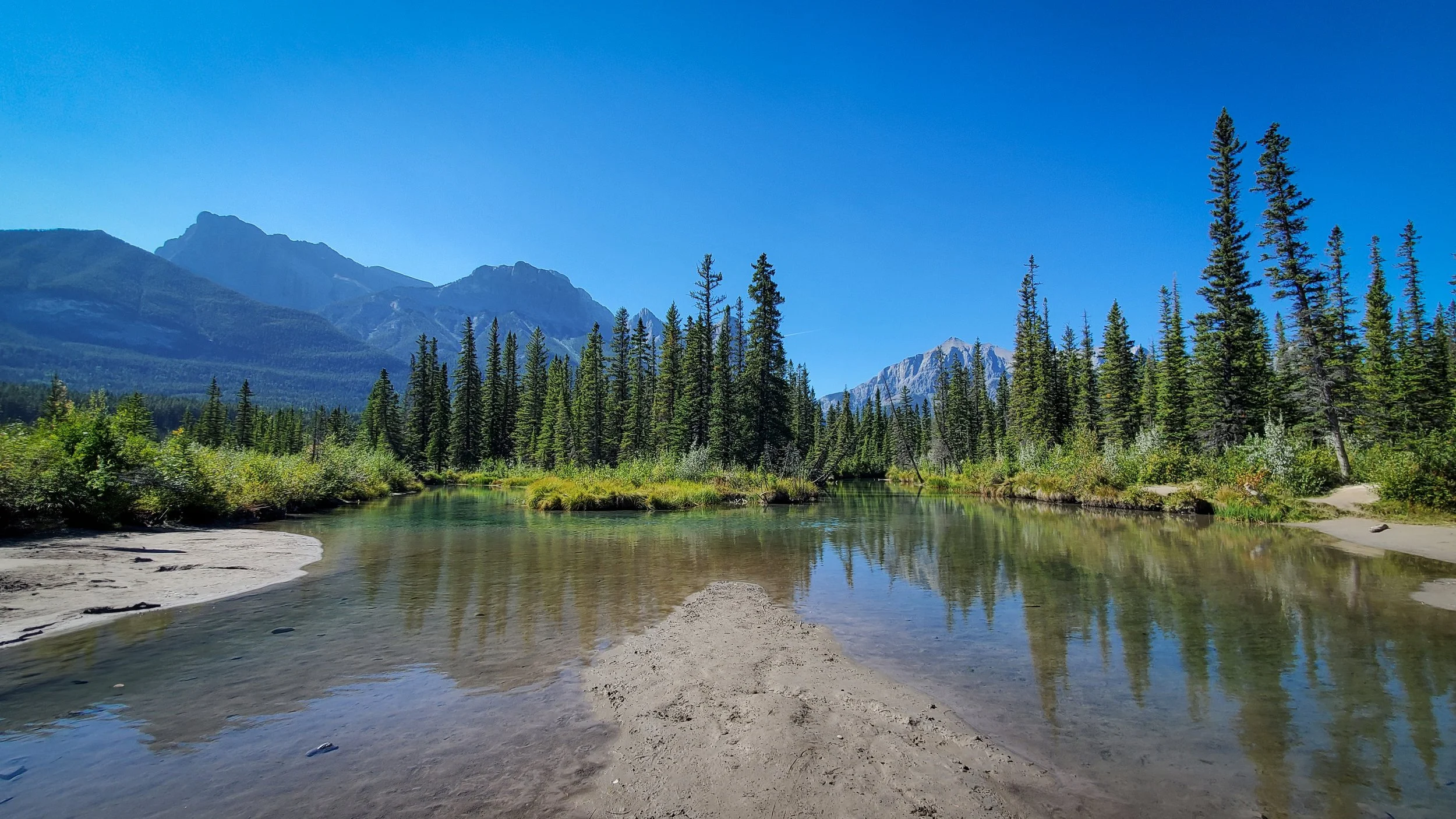 Canmore, a vibrant mountain town in Alberta, Canada. Canmore is nestled in the heart of the Bow River Valley and flanked by peaks on all sides.