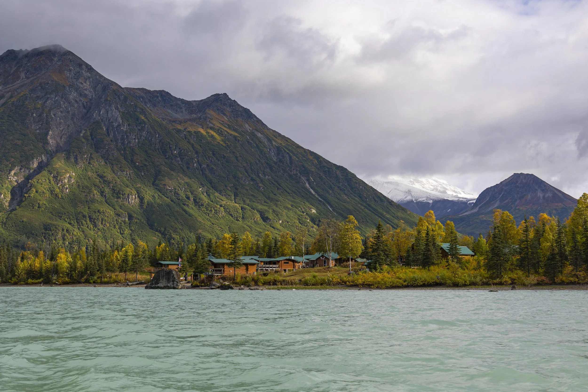 My Alaskan adventure kicked off with a day trip to capture landscapes and photograph bears. A scenic 90-minute seaplane flight from Anchorage took us to Redoubt Mountain Resort, nestled by the tranquil Crescent Lake in Lake Clark National Park and Preserve. The flight, offering breathtaking views of glaciers and volcanoes, was nothing short of stunning. The landing on Crescent Lake’s turquoise waters was equally spectacular. After a brief orientation, we boarded a pontoon boat with a local guide, who navigated us through remote areas of the nine-mile-long lake, searching for bears feasting on sockeye salmon. The surrounding mountains showcased the vibrant colors of Fall, contrasted by patches of snow that remain year-round.