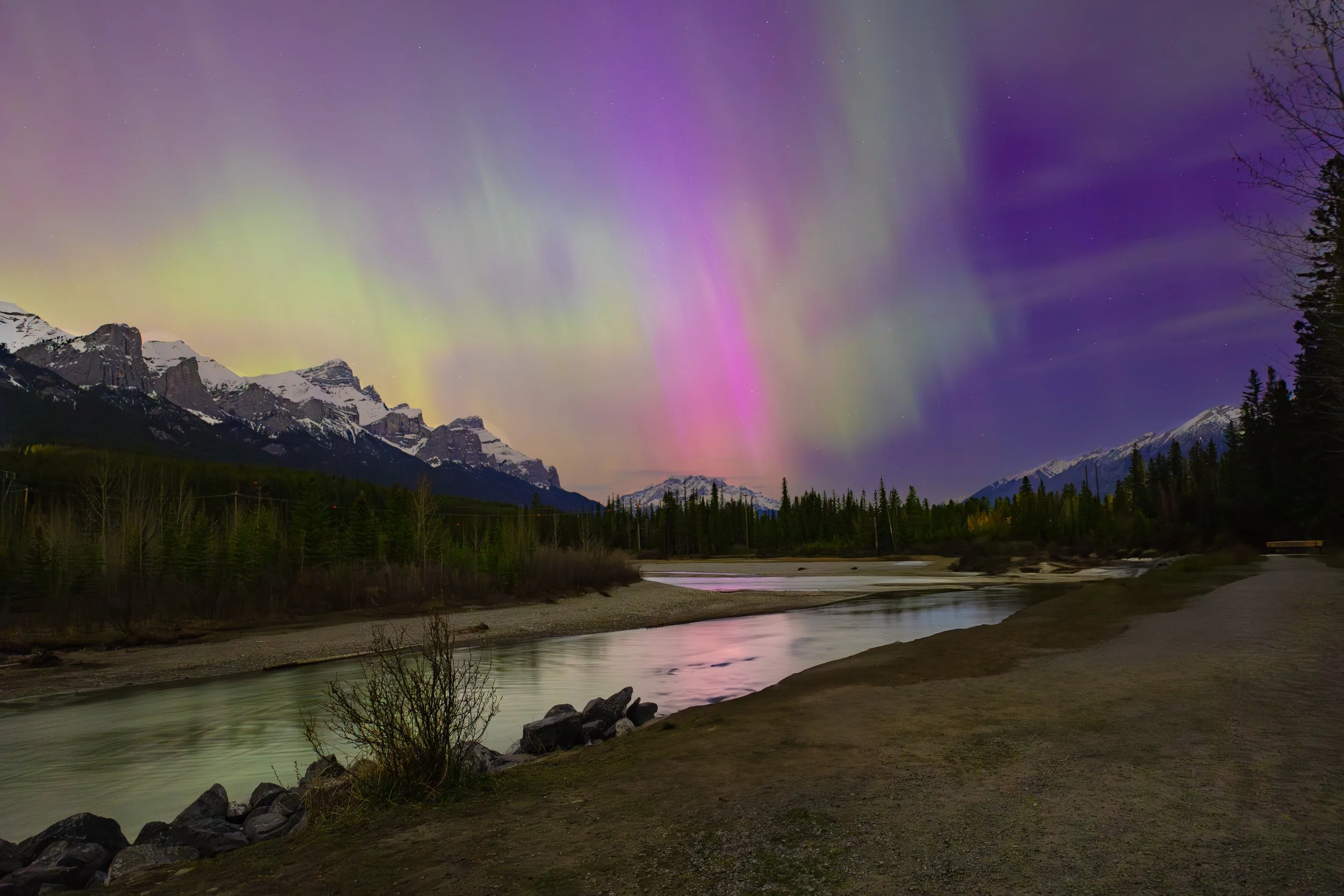 The May weekend solar storm gifted us with a breathtaking display of the northern lights (aurora borealis), the most vibrant in two decades. Our journey to Canmore, Alberta, for this celestial event exceeded all expectations. As the clock struck 1:40 AM, the chill of the night air served as a reminder of the four and a half hours we had spent capturing the mesmerizing dance of colors in the sky. Despite our fatigue, we were utterly captivated, unable to tear our eyes away from the celestial spectacle unfolding above us.