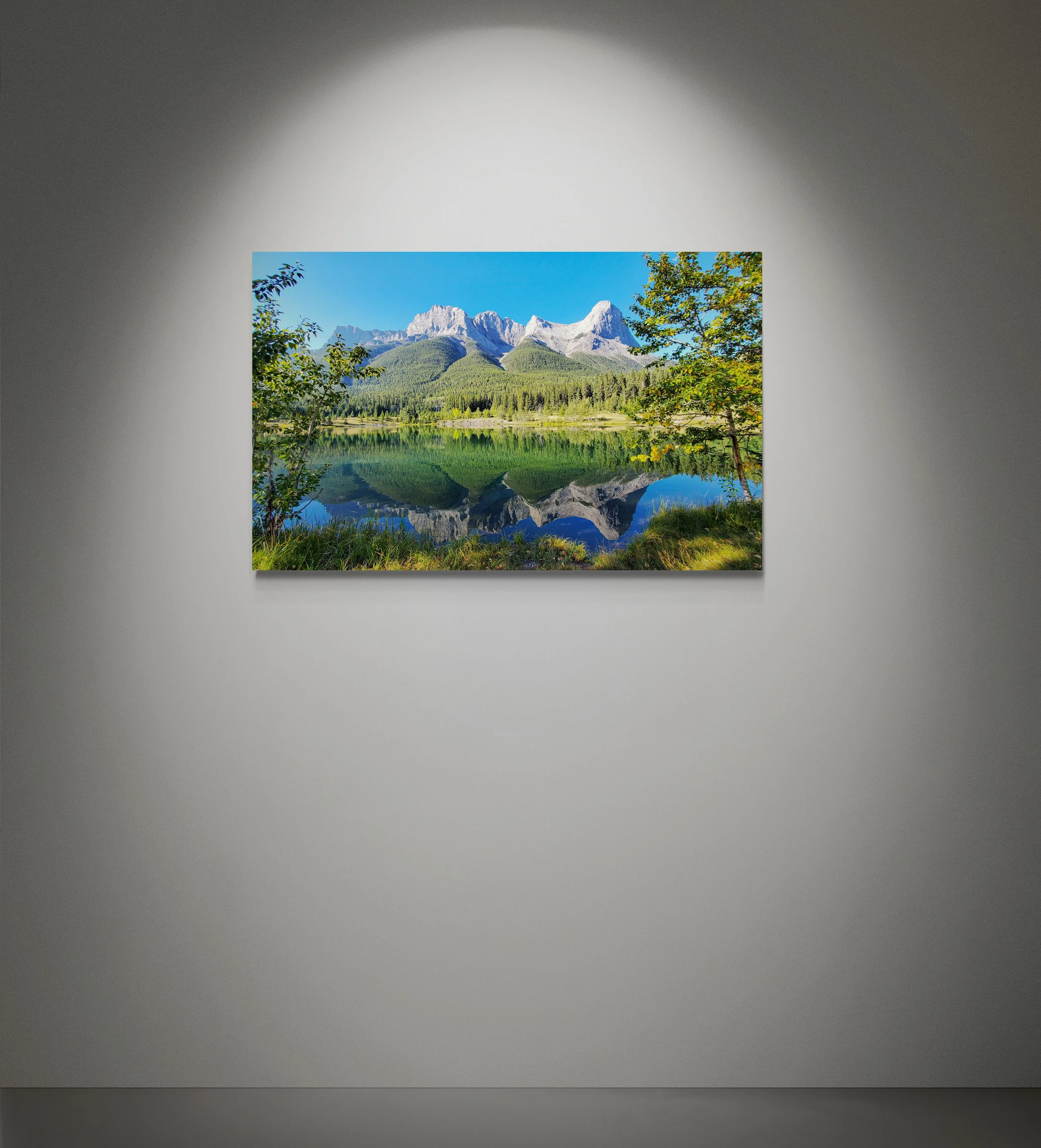 It was early in the morning, the sun was high in the sky, and the still air created perfect, crystal-clear reflections in the water. I was with a friend who wanted to explore some of the hidden gems of the Rockies, and we were rewarded with stunning sights and pristine reflections. This is Canmore, a charming town and the gateway to the Canadian Rockies.