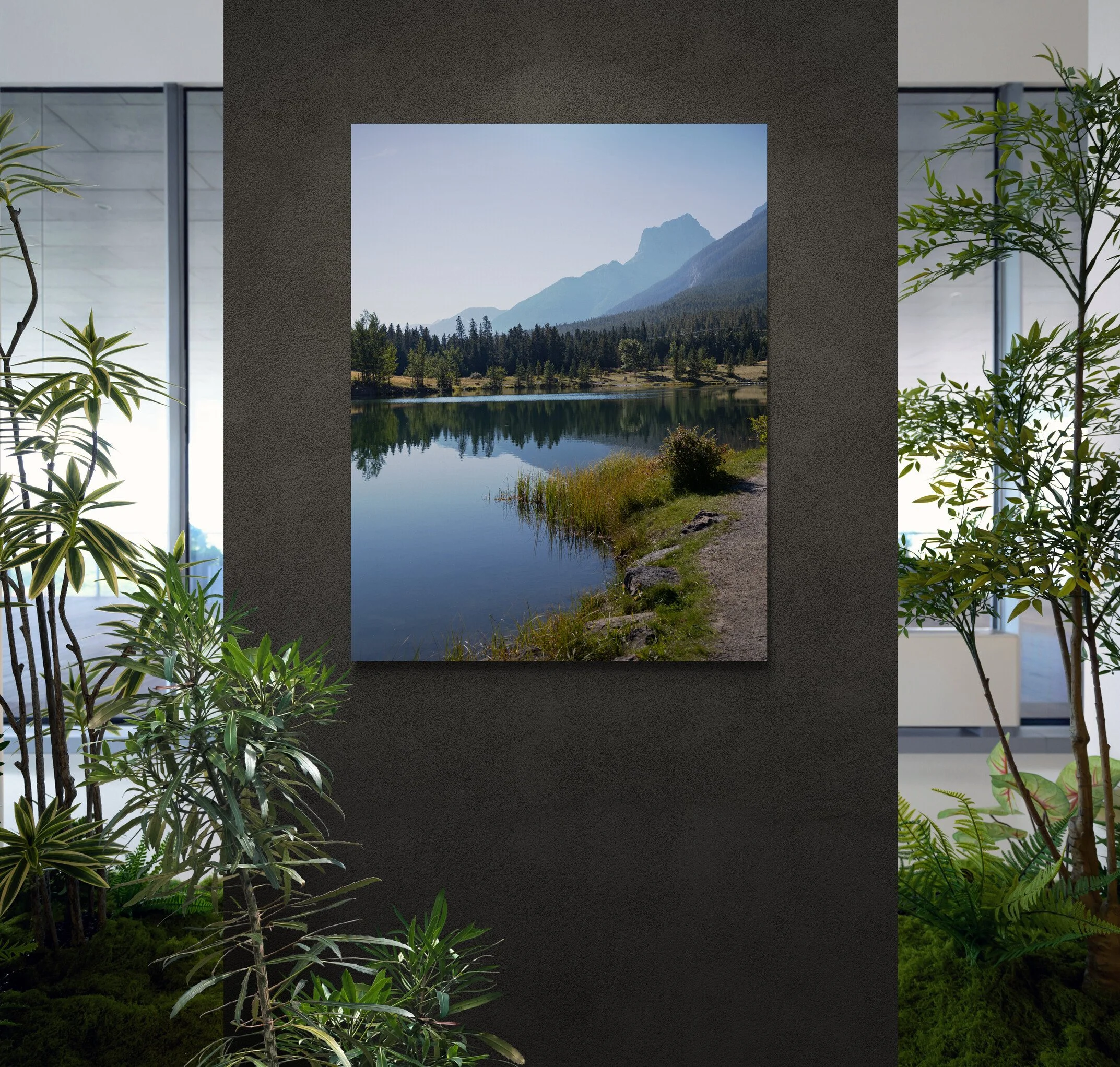 It was early in the morning, the sun was high in the sky, and the still air created perfect, crystal-clear reflections in the water. I was with a friend who wanted to explore some of the hidden gems of the Rockies, and we were rewarded with stunning sights and pristine reflections. This is Canmore, a charming town and the gateway to the Canadian Rockies.